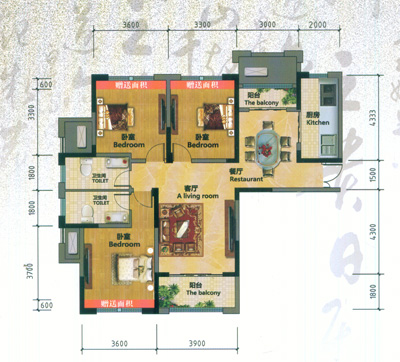 建筑面積約:106M2贈(zèng)送面積約:2.16M2