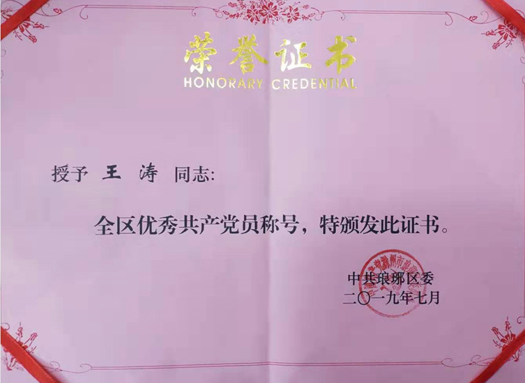 景臣一品項(xiàng)目部王濤同志榮獲“瑯琊區(qū)優(yōu)秀共產(chǎn)黨員”稱號(hào)