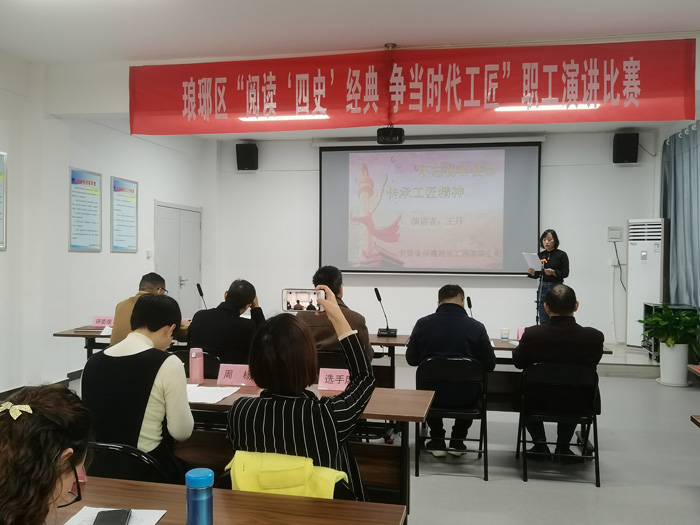 為弘揚(yáng)廣大職工工匠精神,促進(jìn)職工爭當(dāng)時代先鋒,2021年11月19日,公司工會職工參加由區(qū)總工會機(jī)關(guān)工會聯(lián)合區(qū)教育體育局機(jī)關(guān)工會,組織開展的全區(qū)職工“閱讀‘四史’經(jīng)典,爭當(dāng)時代工匠”演講比賽。