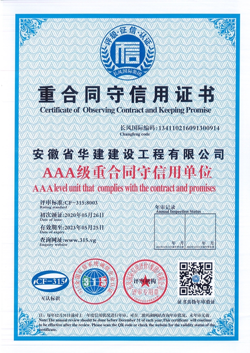 重合同守信用證書(shū)